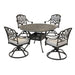 - Timeless Elegance: Elevate outdoor spaces with a Modern Aluminum Dining Set featuring Cushioned Swivel Chairs and a Round Table for enduring style.