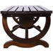 Rustic Wooden Bench With Wagon Wheel Legs For Garden And Patio - Brown