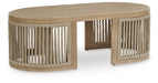 Round out your outdoor living space with the naturally beautiful look of wood. This coffee table will serve up seasons of relaxation on your back deck or sitting pretty by the pool. A gently curved open-weave design, crafted from eucalyptus wood and polyester rope, is the perfect merger of high fashion and lasting durability. It's just the spot for sips and snacks.