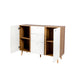 - Versatile Shelving: Includes 2-tier shelves behind each door to store dining ware, tableware, books, or media accessories efficiently.