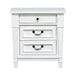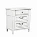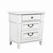 - The Stoney Creek 3-drawer nightstand offers large-scale designs combined with a textured, antiqued white finish. Giving additional charm, the antiqued, blackened metal hardware and tapered leg details complete this relaxing retreat..