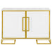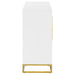 • Bright white finish with gold metal trim enhances visual appeal and complements contemporary decor