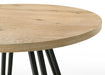 - The Tate Oak Dining Table Set masterfully combines rustic charm and contemporary design. With its generous 47" round top, this table is perfect for gatherings, offering ample space for guests. The tabletop is adorned with a beautifully distressed oak finish. This finish accentuates the natural wood grain and showcases visible knots, adding an authentic, rustic appeal to your dining space. The metal construction of the metal leg frame provides a striking contrast to the wood top, blending rustic and industrial styles. The dining chairs offer a sophisticated addition to the set with their sleek design. The incorporation of a back bar handle is not only a unique design element but also provides practicality, allowing for easy movement of the chair. It's a great choice for both traditional and contemporary dining rooms, providing a warm, welcoming ambiance.