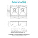 - Dimensions: Exterior size 33" x 22" x 10" with 15" x 16.62" bowls each; fits standard 3-1/2" drain and most garbage disposals