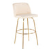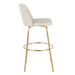 - Construction and Material: The barstool is constructed with a gold metal base that includes a round footrest for added comfort. The padded upholstered seat ensures a cozy seating experience.