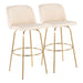 Toriano - Contemporary Fixed Height Barstool With Swivel With Round Footrest (Set of 2) - Cream / Gold