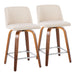Toriano - Mid-Century Modern Fixed Height Counter Stool With Swivel And Square Footrest (Set of 2) - Walnut / Cream