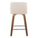 - Design and Style: The Toriano Counter Stool by LumiSource showcases a blend of comfort, modern simplicity, and classic mid-century modern styling. Its design features a padded upholstered swivel seat and fixed-height bent wood legs, making it a versatile addition to various interior themes.