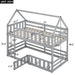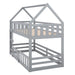 Twin Over Twin House Bunk Bed With Fence And Door - Gray