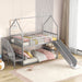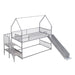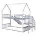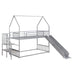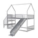 Twin Over Twin Metal Bunk Bed House Bed With Slide And Staircase - Silver