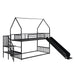 Twin Size Metal Bunk Bed House Bed With Slide And Staircase - Black