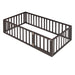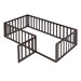 Twin Size Floor Bed Frame With Fence And Door - Walnut