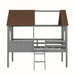 Twin Size Low Loft House Bed With Two Side Windows - Gray / Brown