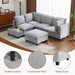 U - Shaped Sectional Sofa Modular Sofa Couch With A Movable Ottoman, A Coffee Table With Hidden Charging Devices For Living Room - Gray