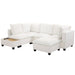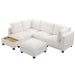 U - Shaped Sectional Sofa Modular Sofa Couch With A Movable Ottoman, A Coffee Table With Hidden Charging Devices For Living Room - White