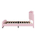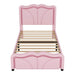 Twin Size Upholstered Platform Bed & Curve Shaped And Height Adjustable Headboard, LED Light Strips - Pink