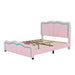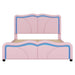 Full Size Upholstered Platform Bed With Curve Shaped And Height Adjustable Headboard, LED Light Strips - Pink