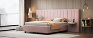 Queen Size Upholstered Platform Bed With Big Headboard - Pink