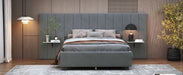 Queen Size Upholstered Platform Bed With Big Headboard - Gray