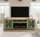 97" Fireplace TV Stand Console For TVs Up To 100" - Sage Green And Fruitwood Finish