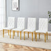 Elegant Vintage Armless Dining Chairs Set With Grid Design And Metal Legs (Set of 4) - White / Gold
