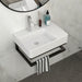 Wall Mounted Rectangular Bathroom Sink With Towel Bar And Faucet Hole - White
