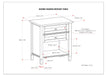 - Features two (2) spacious drawers, open bottom storage area, brushed nickel drawer pulls and metal drawer glides