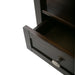 - Features one bottom drawer with metal drawer glides and large open shelf for storage