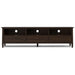 - Features 3 bottom drawers with metal drawer glides, opening to spacious storage compartments, and 3 open compartments for your media devices