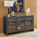 The perfect centerpiece for your transitional space, this gorgeous buffet piece packs all the style and storage you need. The deep ebony finish fits seamlessly with the rich brown base accents for an on-trend color combination. With three gorgeously receded glass front cabinets, adjustable shelves, and ample wine shelves, this piece delivers on style and storage. The decadent gleaming copper hardware brings an antique touch, making this buffet the showstopper in any space.
