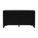 - Three reeded glass front cabinets, each with soft-close hinges, adjustable shelves, and a cutout to pass cords through
