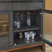 - The right side cabinet includes three wine glass hanging racks, accommodating up to nine glasses