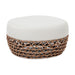 Willow - Round Upholstered Woven Patio Ottoman, Wicker Frame - Wheat Beige / Golden Brown