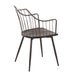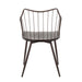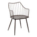 - Farmhouse Styling: This chair embodies farmhouse styling with brown metal legs and armrests, and a walnut wood seat, creating a rustic yet elegant look suitable for both dining and accent seating.