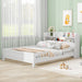 Full Size Platform Bed With LED Light, Storage Headboard And Guardrail - White