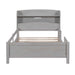 Twin Size Platform Bed With LED Light, Storage Headboard And Guardrail - Antique Gray