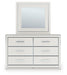 | Details | PCB3381B11: Includes upholstered headboard, footboard, rails and roll slats , Made with engineered wood frames and solid wood components , Polyester upholstery over foam cushioning, Bed does not require additional foundation/box spring; accommodates most zero clearance adjustable bases, Mattress available, sold separately, Minor assembly required, PCB3381B1: Includes dresser and mirror, Made with engineered wood (MDF/particleboard/plywood) and decorative laminate for the right balance of affordability and durability, Matte white finish with subtle replicated wood grain, Decorative laminate replicates natural or man-made material surfaces with consistent color, pattern and texture , Chrome-tone accents, Large-scale chrome-tone handles with faceted details, 6 smooth-gliding drawers, Drawer interiors are lined with a faux linen laminate for a clean, finished look, Mirror attaches to back of dresser; can also be mounted on wall horizontally or vertically, Safety is a top priority, clothing storage units are designed to meet the most current standard for stability, ASTM F 2057 (ASTM International), Drawers extend out to accommodate maximum access to drawer interior while maintaining safety, Minor assembly required, | |