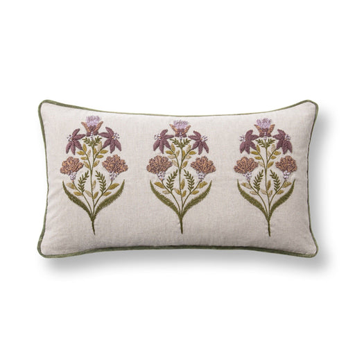 Classic HomeTD Belcourt 14" x 26" Pillow - Floral Multi / Olive GreenProduct Features Hand Embroidered Floral Design Traditional Pillow Design 50% Linen, 50% C...