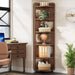 6 Tier Narrow Corner Bookshelf Storage For Living Room - Brown