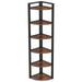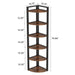 Tall 6 Tier Corner Bookshelf For Living Room - Rustic Brown