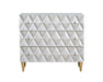 - 3D Diamond-Patterned Facade: The drawers boast a luxurious three-dimensional diamond pattern, paired with gold-tone hardware, offering a chic contrast against the silver finish.