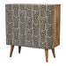 - Artisan Furniture Solid Wood Edessa Bone Inlay Cabinet - This beautiful boho inspired cabinet has been constructed from 100% solid mango wood and has a finish. Other features include bone inlay front doors, and Nordic style legs. The bone inlay is sourced responsibly from deceased animals such as camels, goats, and buffaloes.