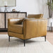 Sink into the ultimate sophistication with this leather Abigail Club Chair. Sleek curved arms meet plush comfort, while bold metal legs add modern finesse. Timeless design and luxurious texture make this chair a statement of style and relaxation.