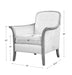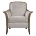 Solidly Constructed Chair Featuring Exposed Hardwood Finished In A Weathered Pecan And Tailored In Soft And Woven Shades Of Taupe And Stone. Welting Adds To The Elegance Of Its Shape Amplifying Fluid Lines All The Way Down To The Tapered Legs.