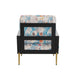 Floral Armchair With Wood Frame - Antique Blue / Black / Flower