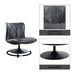 - Swivel Functionality: The chair features a smooth swivel function, supported by a sturdy black round metal base with legs, adding to its edgy industrial charm.