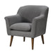 - The Shelby armchair has the clean-line silhouette for the minimalist and the mid-century modern style for any home. The round recessed arms and plush full foam seat cushion gives the comfort and support you need to relax in. Featuring durable quality woven fabric and sturdy wooden legs. Ideal for any living space whether it be for your bedroom, living room, or office space for you or your guest to enjoy. Also available in other colors to complement your home dcor.