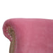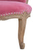 - Velvet Studded Chair - Add class and style to your home with this occasional chair. The upholstered cotton velvet fabric goes beautifully with the studded design giving the piece an overall unique and chic look. With solid wooden legs constructed from 100% solid mango wood in a sunbleach finish, the chair provides strength and durability and can be incorporated in different home settings and interiors.