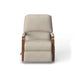 Beautiful oak arm accentuates a curvy frame. The Woodlawn recliner spotlights a beautifully curved oak arm topped off with a soft upholstered arm cap. The comfort of the fully padded footrest, divided back cushions, and refined scaling make Woodlawn a great recliner for any setting. A power reclining mechanism lets you change angles effortlessly from an upright to a fully reclined position with the touch of a button.