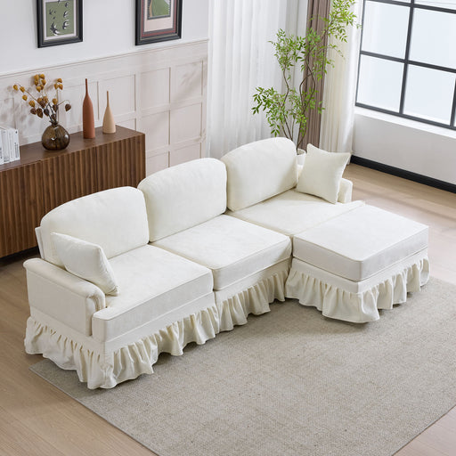 Original price $1,169.00Original price $1,169.00 - Original price $1,169.00Original price $1,169.00Current price $1,029.00$1,029.00 - $1,029.00Current price $1,029.00L-Shaped Sectional Sofa With Removable Ruffled Skirt, Flared Arms, Ottoman - White